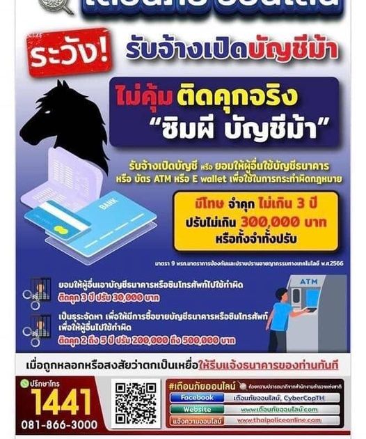 เตือนภัยออนไลน์ รับจ้างเปิดบัญชีม้า 3 มกราคม 2567 โดย adminpure / ข่าวประชาสัมพันธ์ สภ.บ้านแพรกภ.จว.พระนครศรีอยุธยาเตือนภัยออนไลน์ รับจ้างเปิดบัญชีม้า #ไม่คุ้ม ติดคุกจริง FacebookFacebookXXLINELine