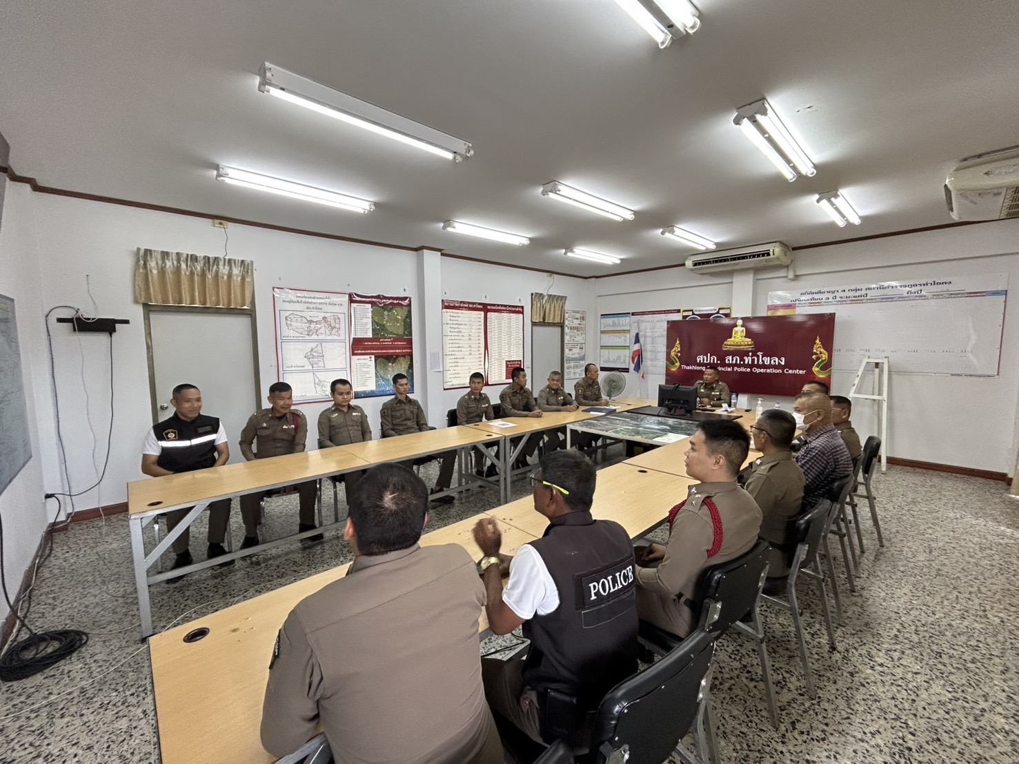 พ.ต.ท.นพรรณพ สีหว้าสะโสม สว.สภ.ท่าโขลง ได้ประชุมชี้แจง และ มอบหมายให้ข้าราชการตำรวจแต่ละสายงานประชาส